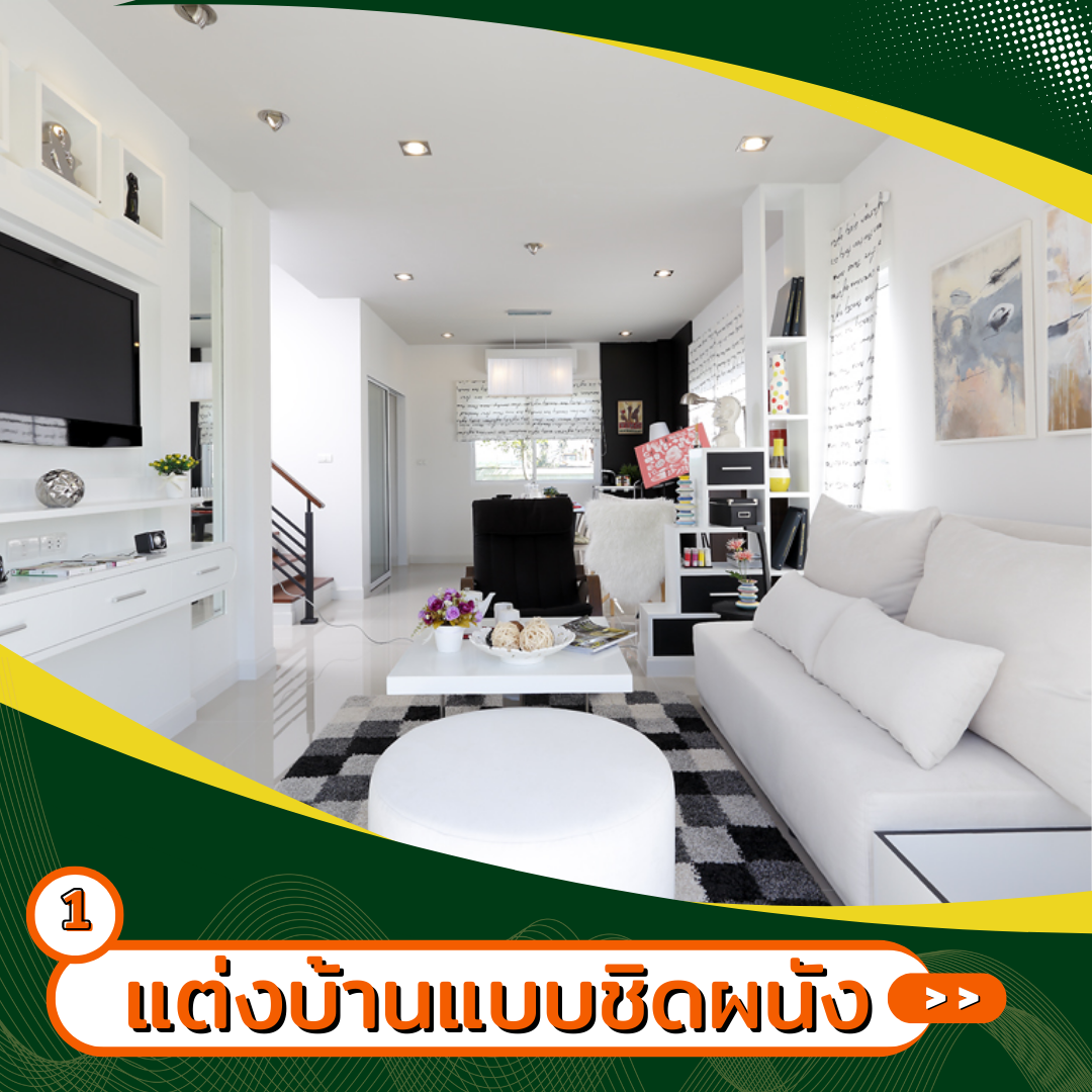 การแต่งบ้านแบบชิดผนัง คือการจัดโซฟา ตู้และของประดับตกแต่งต่างๆ ให้อยู่ติดผนังบ้านทั้งหมด และอะไรที่สามารถวางซ้อนกันได้ ก็ควรจะนำมาซ้อนกันให้เป็นระเบียบ