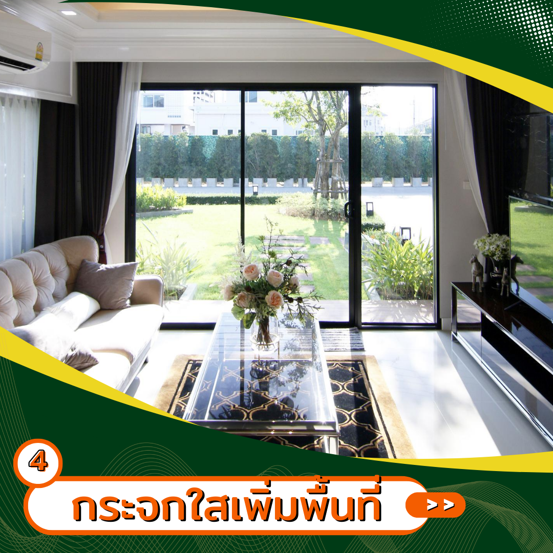 ลองเปลี่ยนมากั้นผนังห้องด้วยกระจกทั้งนี้ต้องเลือกห้องที่เหมาะสมจะใช้กระจกกั้นนะคะ เช่น ระหว่างห้องโถงกับห้องนั่งเล่นวิธีนี้จะทำให้บ้านดูโล่งโปร่งสบายมากขึ้น นอกจากนี้ ยังสามารถใช้กระจกเงาบานใหญ่ๆ มาช่วยทำให้บ้านดูกว้างขึ้นได้มากเลยล่ะค่ะ