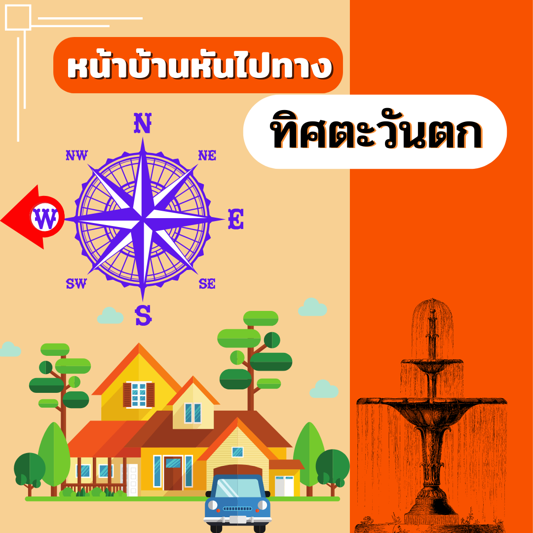 ทิศตะวันตกเป็นทิศที่เชื่อกันว่า มักจะส่งผลให้ดวงชะตาพลิกผันแบบร่ำรวยแบบไม่ทันตั้งตัว หน้าบ้านทิศนี้จึงเน้นให้ตกแต่งด้วยสิ่งของที่เกี่ยวกับน้ำ เช่น บ่อปลา อ่างบัว น้ำพุ หรือน้ำตกจำลอง การตกแต่งควรเน้นโทนสีทึบๆ เช่น ดำและเทาเป็นหลัก และไม่ควรลืมเพิ่มความสว่างไสวให้แก่ตัวบ้านด้วยการติดโคมไฟหรือหลอดไฟให้ทั่วจะช่วยเพิ่มโชคด้านการพูดให้ได้เปรียบมากขึ้นค่ะ
