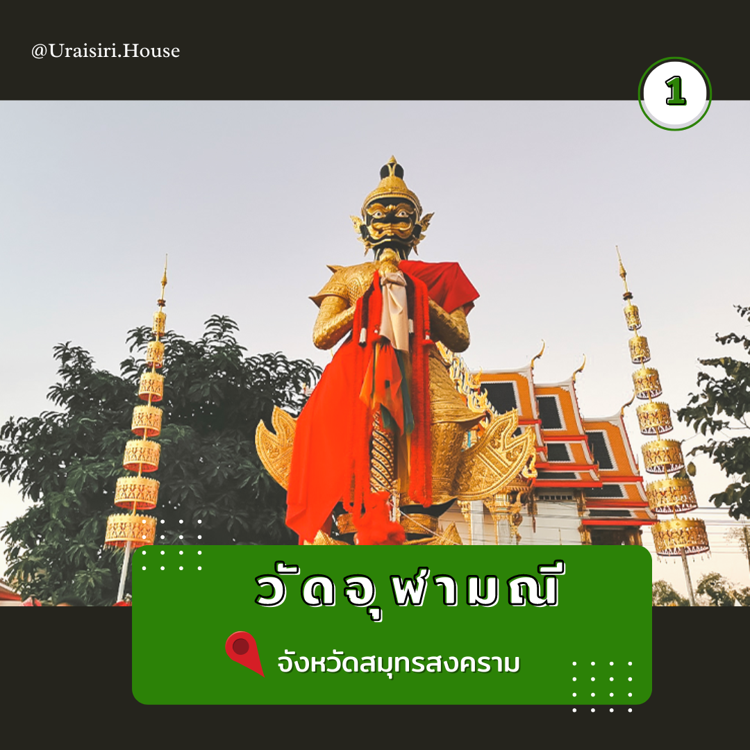 ปิดท้ายด้วยวัดสวยย่านสมุทรสาคร โดยภายในวัดจะมีพระบรมธาตุที่สวยงามและอลังการ อีกทั้งบริเวณทางเข้าเจดีย์จะมีท้าวเวสสุวรรณ องค์สูงกว่า 5 เมตร ให้ผู้คนได้กราบไหว้ ซึ่งมีความเชื่อว่าช่วยเสริมสิริมงคล อำนาจวาสนา และช่วยขจัดสิ่งอัปมงคลต่างๆ