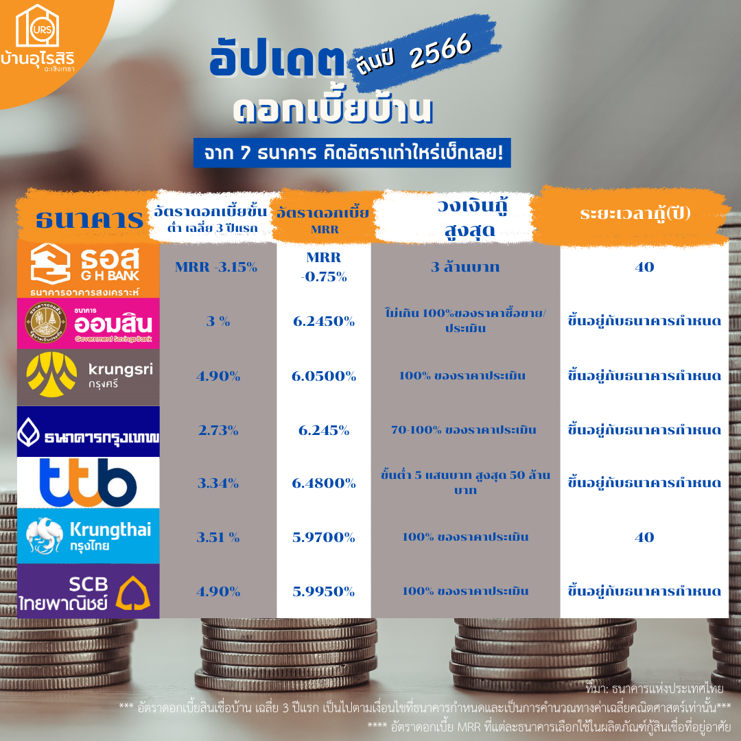 อย่างไรก็ตาม อัตราสินเชื่อบ้านโดยส่วนใหญ่จะเปลี่ยนแปลงไม่บ่อยมากนัก ประมาณ 1 ไตรมาสหรือครึ่งปีต่อครั้ง ซึ่งการปรับเปลี่ยนของอัตราดอกเบี้ยสินเชื่อบ้านขึ้นอยู่กับปัจจัยที่แตกต่างกันระหว่างธนาคารแต่ละแห่งด้วย และหากต้องการข้อมูลอย่างละเอียด แนะนำว่าให้ไปปรึกษากับเจ้าหน้าที่ธนาคารที่เราต้องการขอยื่นสินเชื่อโดยตรง หรือ โทรสอบถามข้อมูลจากเจ้าหน้าที่สินเชื่อ เพื่อที่จะได้รับข้อมูลที่ถูกต้องครบถ้วน ที่สำคัญควรศึกษาข้อมูลหลายๆธนาคารเพื่อนำมาเปรียบเทียบว่ายื่นกู้กับธนาคารไหนตอบโจทย์และคุ้มค่ากับเราที่สุด เพราะหนี้บ้านนั้น จะเป็นหนี้ก้อนโตที่อยู่กับเราไปอีกหลายสิบปี !!