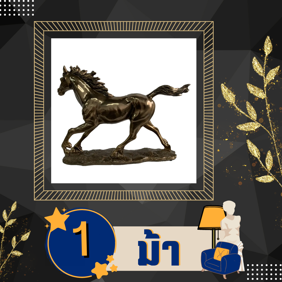 เป็นสัตว์ที่แข็งแรงและว่องไว ตามหลักฮวงจุ้ยเชื่อว่าม้าเป็นสัตว์ของธาตุไฟและเต็มเปี่ยมไปด้วยพลังงานหยาง จึงเป็นสัญลักษณ์ของชนชั้นสูง หากประดับไว้ในบ้านจะช่วยให้ธุรกิจการงานเจริญก้าวหน้าอย่างก้าวกระโดดเหมือนความเร็วม้าวิ่ง ทั้งนี้ควรประดับไว้ทางทิศใต้ของห้องนั่งเล่นซึ่งเป็นทิศประจำปีม้า เสริมอำนาจบารมีให้โดดเด่นยิ่งขึ้น นอกจากนี้จำนวนม้าก็มีผลด้วยเช่นกัน หากวางไว้ 3 ตัว จะเสริมดวงครอบครัวให้รักกันเหนียวแน่นมากขึ้น หรือม้า 8 ตัว จะเสริมการงานให้ก้าวหน้าและอำนวยพรให้มีสุขภาพแข็งแรงอีกด้วย