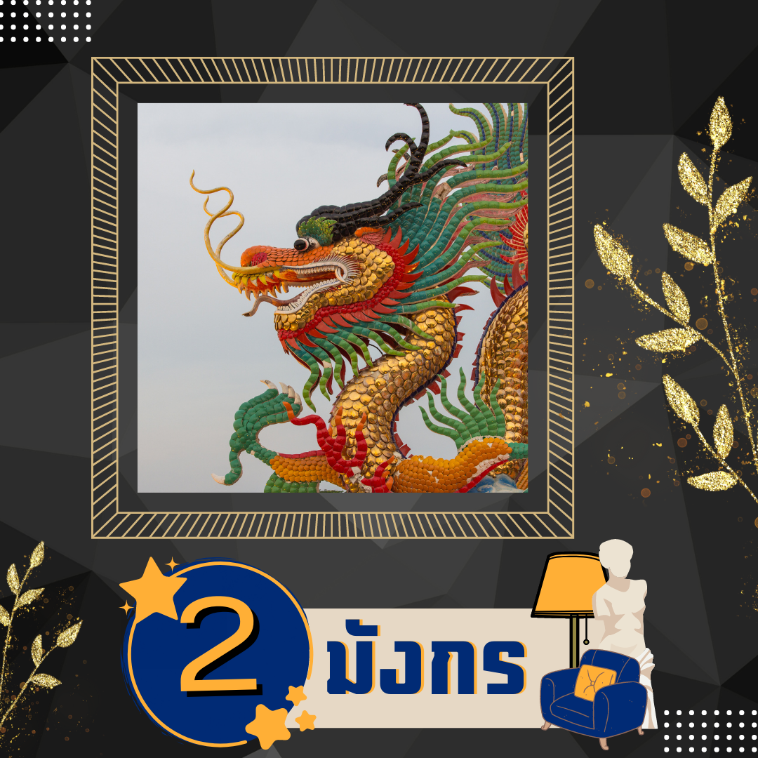 เป็นสัตว์ศักดิ์สิทธิ์ตามตำนานความเชื่อของคนจีน มังกรมีรูปร่างผสมกันระหว่างเขาของกวาง, หัวของวัว, ลำตัวเป็นงู, เกล็ดของปลา และเท้าของเหยี่ยว ทำให้เคลื่อนที่ไปไหนมาไหนก็ได้ทั้งบนบก บนฟ้า หรือในน้ำก็ตาม ด้วยความพิเศษของมังกรจึงกลายมาเป็นสัญลักษณ์ของจักรพรรดิและชนชั้นสูง แต่ในปัจจุบันนิยมนำมาประดับไว้ทางทิศตะวันออกของบ้านหรือบริษัท เพื่อเสริมความมั่งคั่งอุดมสมบูรณ์, พลังอำนาจ, ความแข็งแกร่ง, กล้าหาญอดทน