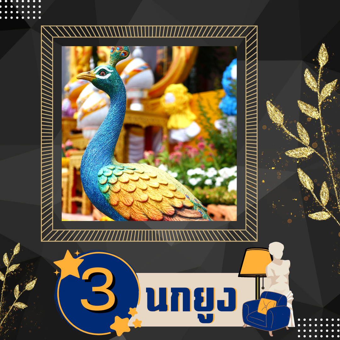 นอกจากจะเป็นสัตว์ที่มีรูปลักษณ์ของความสวยงามแล้ว ยังเป็นสัญลักษณ์ของความรัก, ความโชคดีมีสุข เจริญในหน้าที่การงาน ธุรกิจก้าวหน้า, โดดเด่นในเรื่องอำนาจวาสนา นอกจากนี้ยังเชื่อกันว่านกยูงมีดวงตาถึง 1,000 ตา ซึ่งจะคอยสอดส่องไม่ให้ลูกน้องหรือหุ้นส่วนคิดร้ายต่อเรา ป้องกันภยันตรายรอบตัว แต่หากจะเน้นเรื่องความรักควรประดับไว้เป็นคู่เพื่อเสริมให้รักกันมั่นคง หรือหากเป็นคนโสดก็จะดึงดูดความรักดีๆ ให้เข้ามาในชีวิต และควรประดับไว้ในห้องรับแขกหรือห้องทำงาน ทั้งนี้ควรเลือกรูปปั้นนกยูงกำลังรำแพนหางเพื่อกระตุ้นเสริมดวงให้เป็นไปตามหวังได้ดียิ่งขึ้น