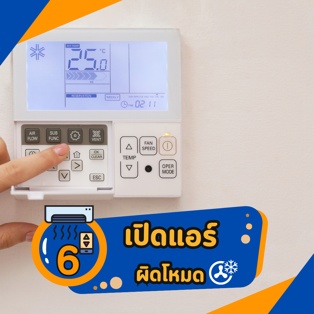 ในรีโมทแอร์จะมีระบบการทำงานให้เลือกใช้หลากหลายรูปแบบ เช่น ถ้าในช่วงที่มีอากาศร้อน แต่เลือกเปิดเป็นโหมดฝนตก ก็จะทำให้แอร์ไม่เย็นฉ่ำตามที่ต้องการ หรือแม้แต่การตั้งเป็นระบบพัดลม ก็จะทำให้แอร์หยุดทำงาน จึงทำให้อากาศในห้องอุ่นขึ้น