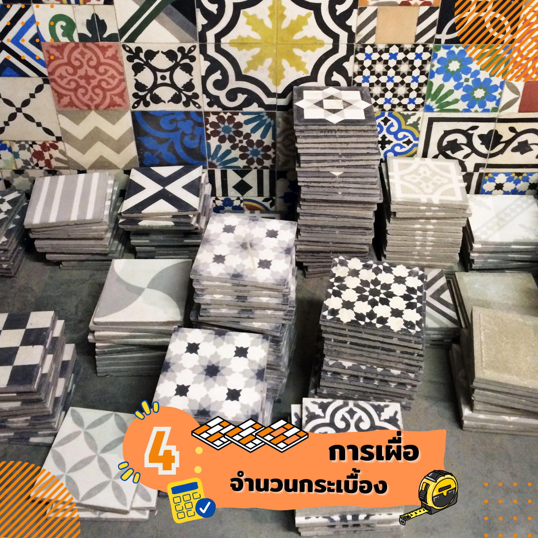 อีกสิ่งที่สำคัญนั้นก็คือ การเผื่อจำนวนกระเบื้องซึ่งควรมีการเผื่อ 3-5% เพื่อไว้สำหรับเปลี่ยนกรณีที่มีการแตกหักเสียหาย เพราะถ้าหากไม่มีการเผื่อหรือสำรองไว้ กระเบื้องอาจจะหมด หรือ ต่าง Lot นั้นเองค่ะ