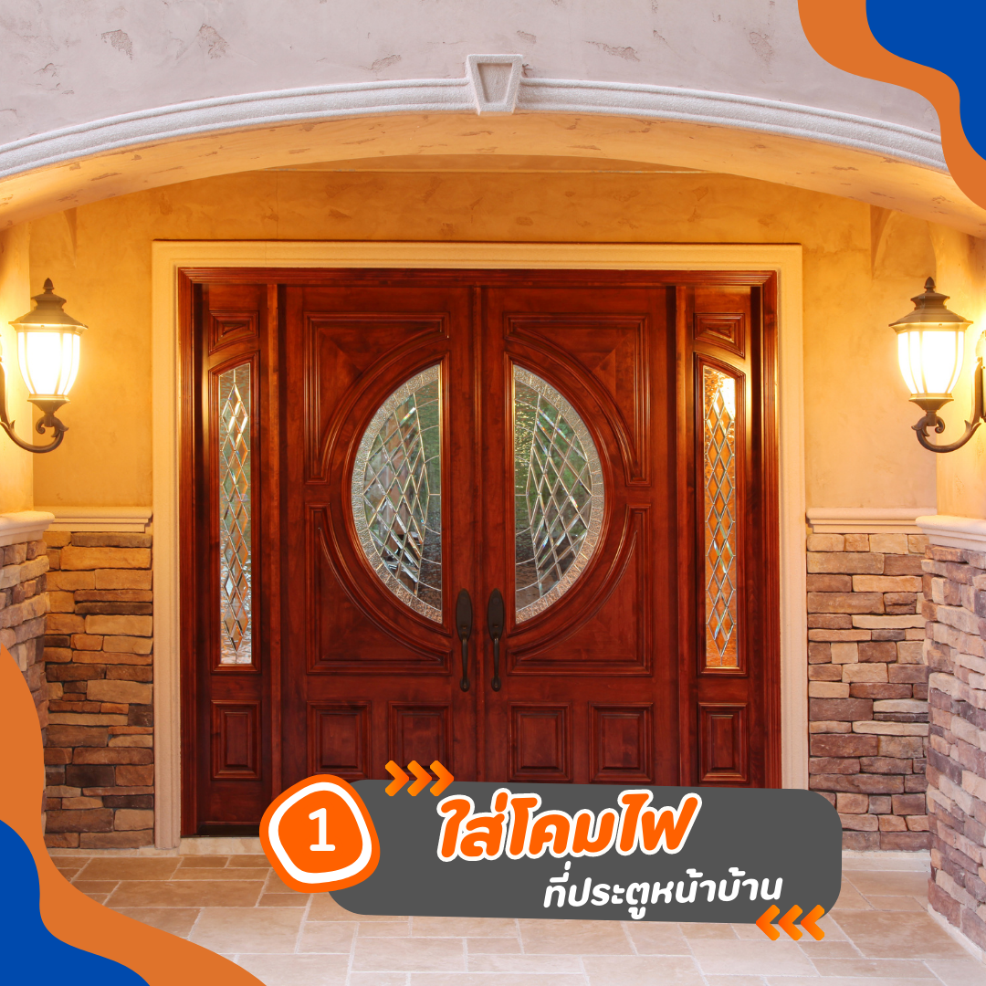 ขอเริ่มตั้งแต่ประตูทางเข้า นั้นก็คือ โคมไฟ ที่ประตูหน้าบ้านการติดโคมไฟที่ประตูจะช่วยให้เกิดพลังซี (Chi) เปรียบได้กับ “พลังงานแห่งชีวิต” (Energy of life) นั้นเอง การติดให้ติดไว้ที่หัวเสาของรั้วทั้ง 2 ข้างและเปิดไฟไว้ในเวลากลางคืนเพื่อดึงโชคลาภเข้าสู่บ้าน