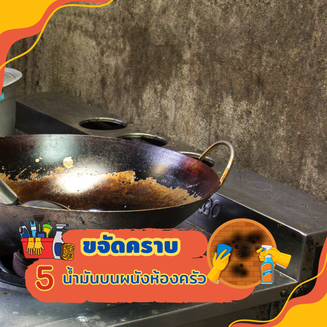 5 . ขจัดคราบน้ำมันบนผนังห้องครัว