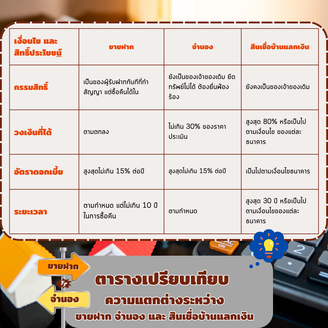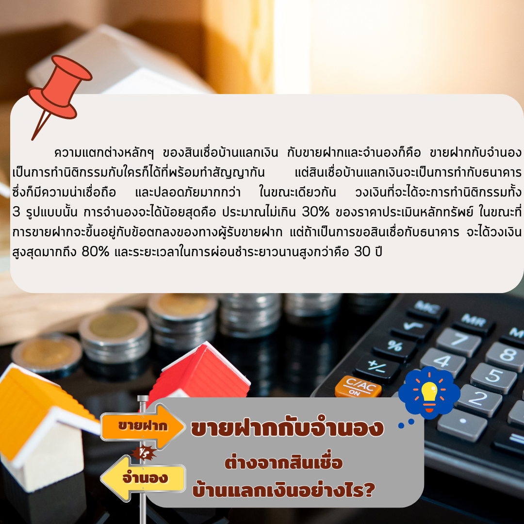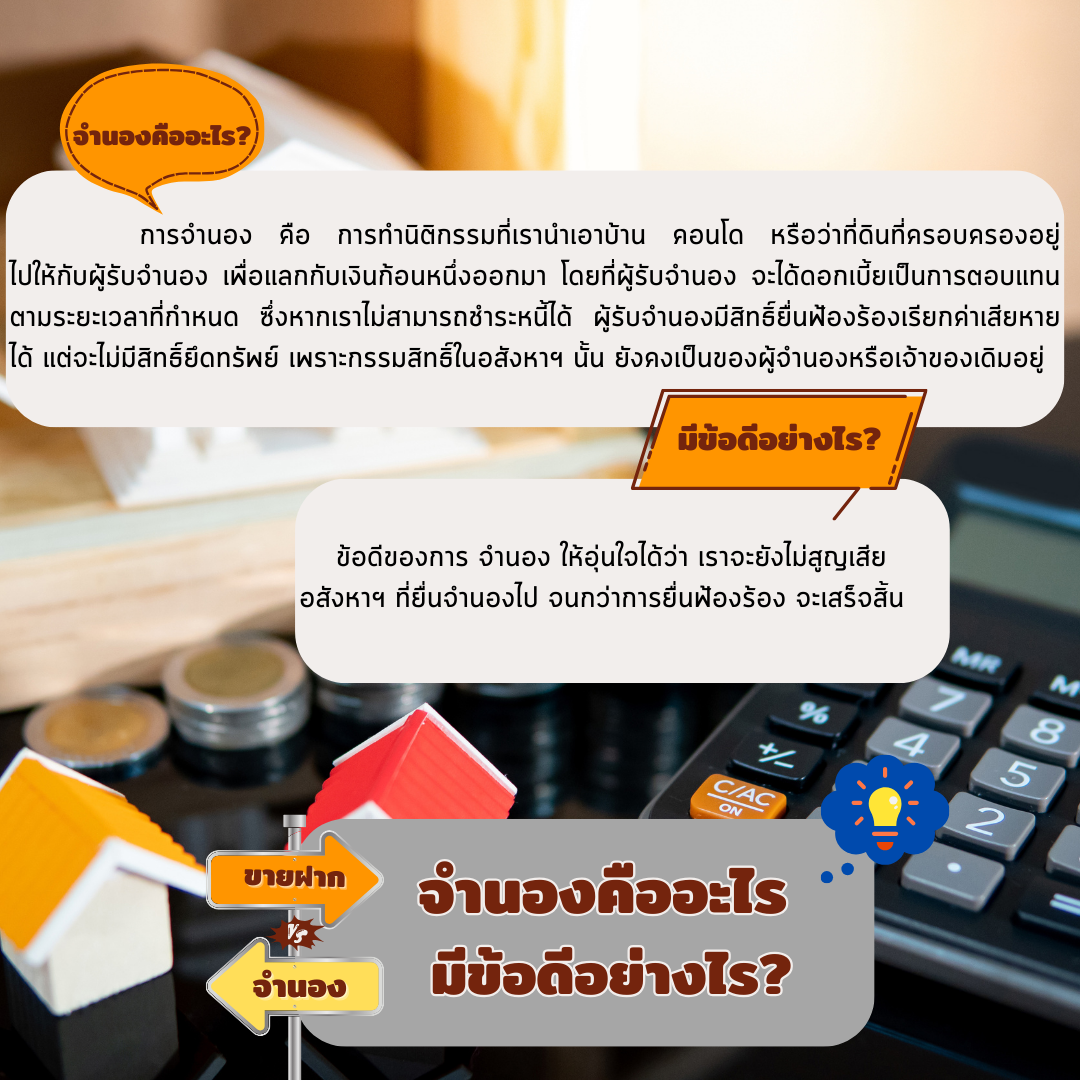 ขอขอบคุณที่มา : ศูนย์ข้อมูลอสังหาริมทรัพย์-มีอสังหาฯ อยากได้เงินทุน “จำนอง” หรือ “ขายฝาก” ดีกว่ากัน?