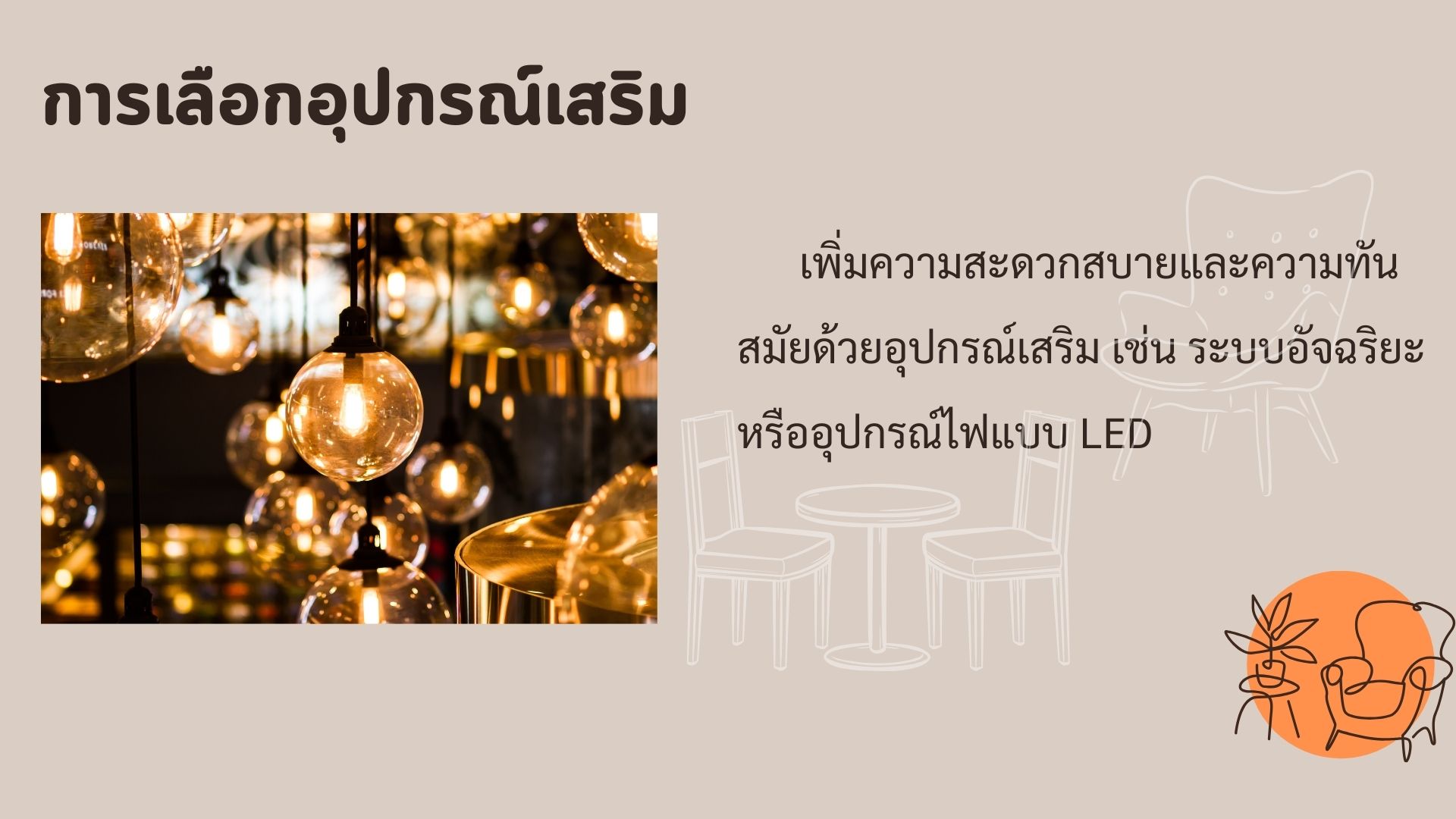 การเลือกเฟอร์นิเจอร์และอุปกรณ์ เพื่อสร้างบรรยากาศให้น่าอยู่และสะดวกสบายในการใช้งาน ทาวน์โฮมชั้นเดียว ของคุณได้ดีขึ้น ลุยเลยค่ะ