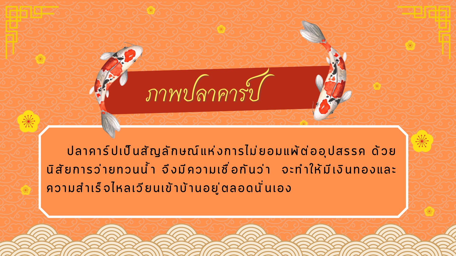 ปลาคาร์ปเป็นสัตว์ยอดนิยมที่ร้านป้ายคุ้นชินสายมูเตลูตัวจริงต้องไม่พลาด เพราะปลาคาร์ปเป็นสัญลักษณ์แห่งการไม่ยอมแพ้ต่ออุปสรรค ด้วยนิสัยการว่ายทวนน้ำ จึงมีความเชื่อกันว่า ถ้าคุณมีภาพปลาคาร์ปอยู่ในป้ายบ้านเลขที่ จะทำให้มีเงินทองและความสำเร็จไหลเวียนเข้าบ้านอยู่ตลอดนั่นเอง