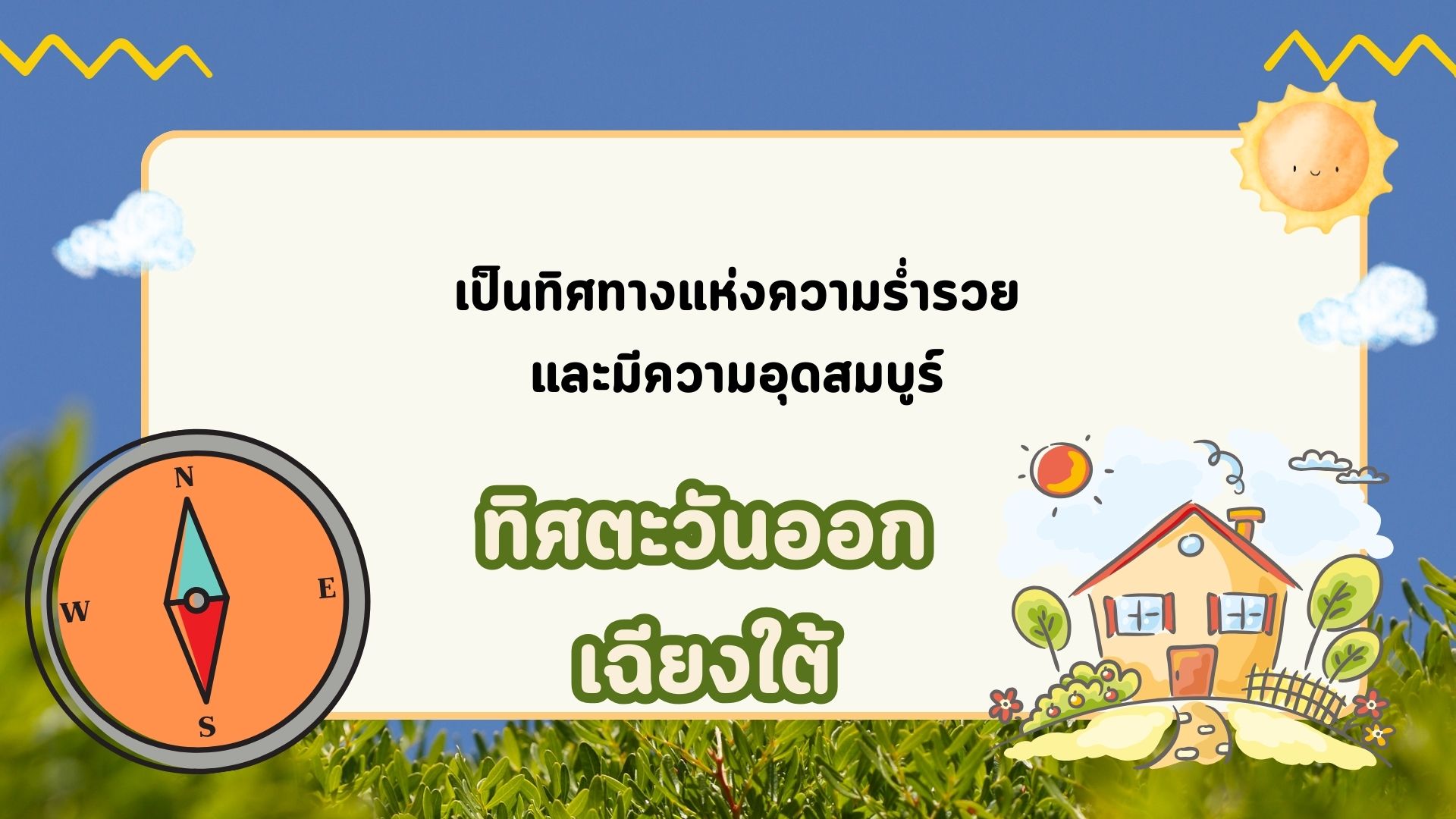 ทิศตะวันออกเฉียงใต้ : เป็นทิศทางแห่งความร่ำรวย และมีความอุดสมบูรณ์ ต้นไม้ที่เหมาะปลูกทิศทางนี้ ได้แก่…