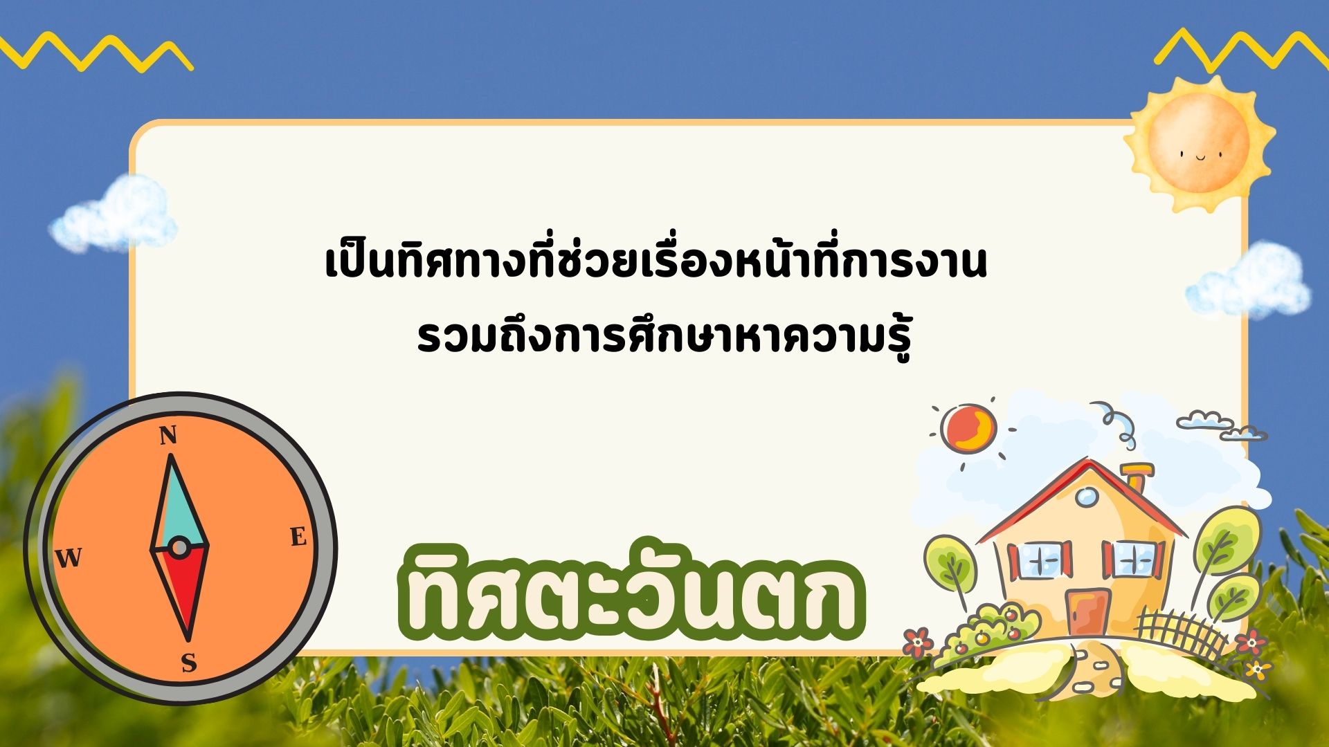 ทิศตะวันตก : เป็นทิศทางที่ช่วยเรื่องหน้าที่การงาน รวมถึงการศึกษาหาความรู้ ต้นไม้ที่เหมาะปลูกทิศทางนี้ ได้แก่…