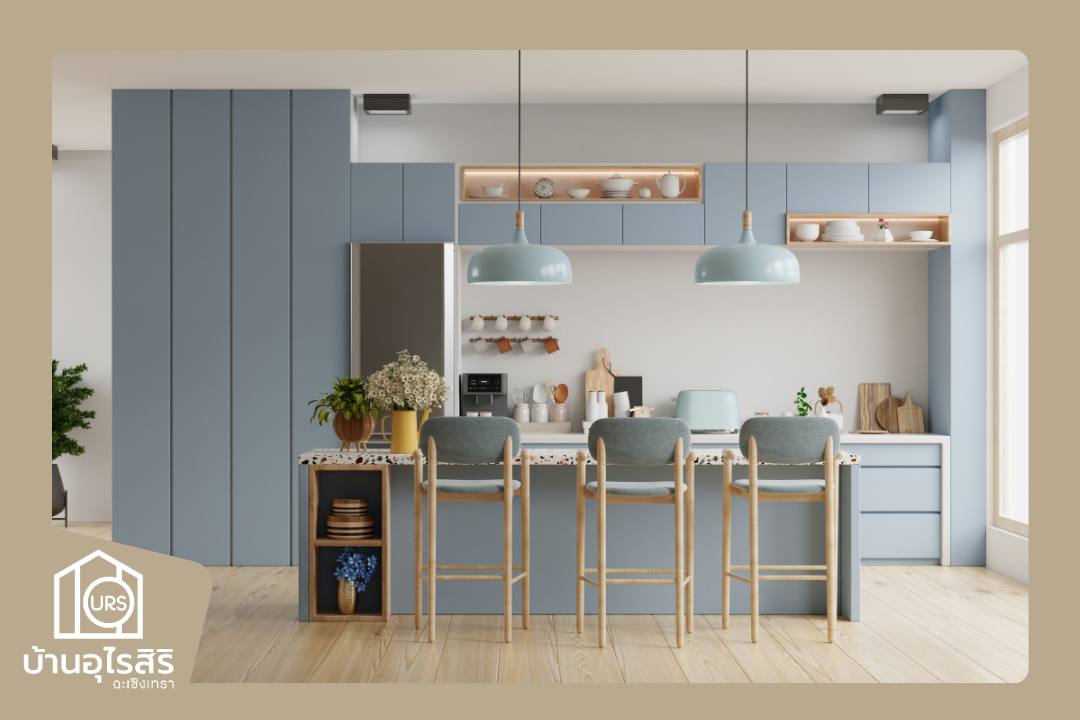 ภาพ: ห้องครัวสีฟ้าอ่อน