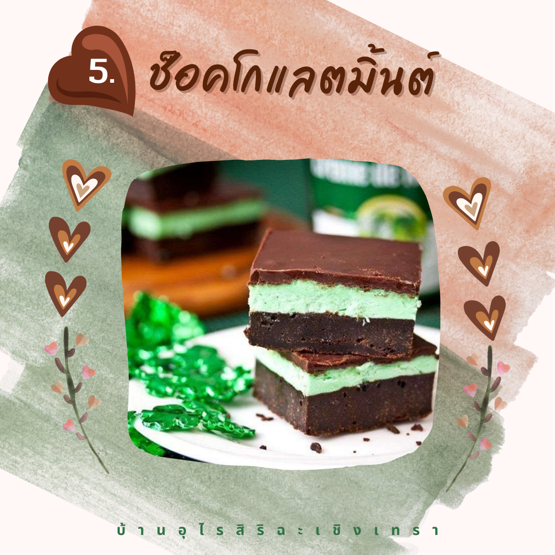 เป็นอีกหนึ่งช็อคโกแลตสุดฮิตที่นำมาทำเป็นทั้งของหวานและไอศกรีม ถึงแม้ว่าจะให้ความรู้สึกเย็น เหมือนทานยาสีฟันอยู่แต่เรื่องความอร่อยคงไม่ต้องพูดถึง เพราะความหอมของกลิ่นมิ้นต์ผสมกับ