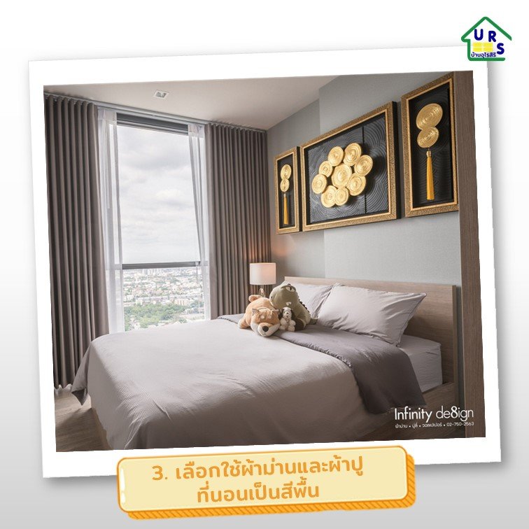 การคุมโทนในบ้านให้เป็น Theme เดียวกัน ผ้าม่านเป็นองค์ประกอบสำคัญของบ้านที่เห็นได้ชัดในระดับสายตาของผู้อยู่อาศัย ส่วนผ้าปูที่นอนก็เป็นจุดสำคัญในห้องนอนที่จะช่วยทำให้บรรยากาศภายในห้องน่าอยู่ การเลือกสีของม่านและผ้าปูที่นอนคือ ให้เลือกสีผ้าที่เป็นสีพื้น แบบไม่มีลวดลาย จะไม่ทำให้ลายตา และไม่ทำให้บ้านหรือห้องดูรก ช่วยคุมโทนสีได้ดีค่ะ