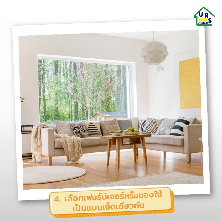 การเลือกเฟอร์นิเจอร์ ให้เลือกที่เป็นเซ็ตเดียวกันหรือแบรนด์เดียวกัน เพราะจะช่วยในการคุมทั้งโทนสีและรูปแบบของเฟอร์นิเจอร์ให้เป็นรูปแบบเดียวกัน โดยอาจจะเริ่มจากชิ้นเล็กๆ ก่อน เช่น ซื้อเซ็ตโต๊ะทานอาหารใหม่ เราก็เลือกโต๊ะ โทนสีพื้น สีเดียวกันและเลือกชุดจาน ชาม ช้อน-ส้อม ที่เป็นแบรนด์เดียวกัน