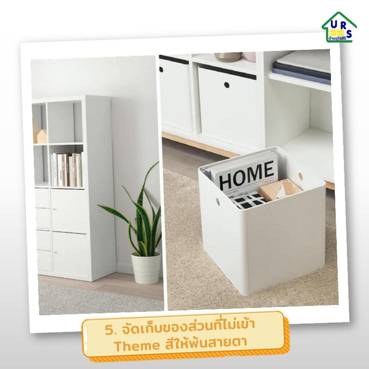 ไม่ว่าจะบ้านเก่า บ้านใหม่ มักจะมีของใช้กระจุกกระจิกมากมาย ซึ่งถ้าจะให้คุมโทนเราก็ต้องเลือกสีของใช้นั้นๆ ให้เข้ากับสีห้องตั้งแต่แรกที่ซื้อ ส่วนของที่มีอยู่แล้วและเราก็หาลิ้นชักหรือหากล่องเก็บของที่มีสีที่เข้ากับธีมห้องมาจัดเก็บของใช้ต่างๆ เพื่อให้ภาพรวมของห้องเป็นไปในทางเดียวกัน สีไม่โดด แล้วยังทำให้เราหาของได้ง่ายขึ้นอีกด้วย