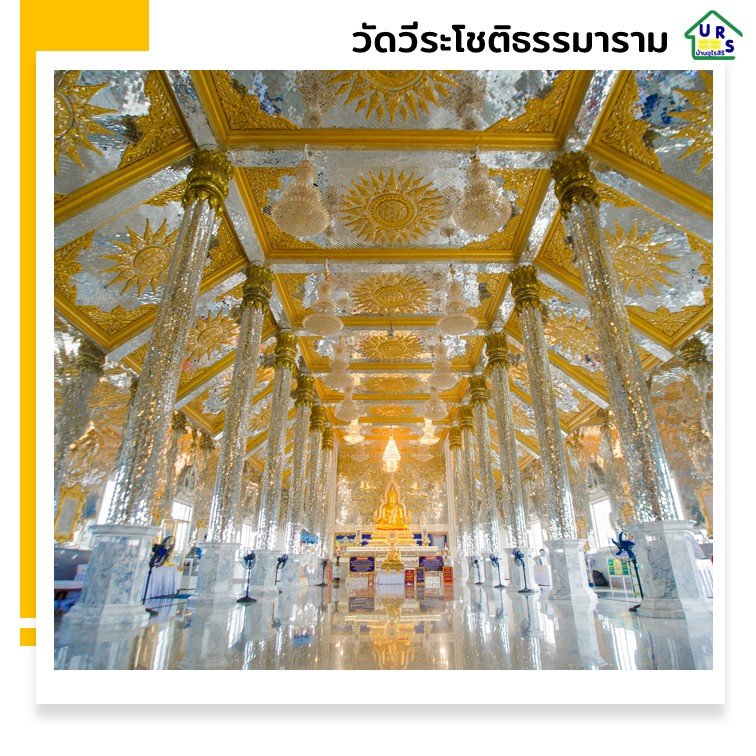 วัดวีรโชติธรรมาราม ที่นี่เป็นอีกหนึ่ง วัดสวย โดดเด่นด้วย อุโบสถแก้วกลางน้ำ ซึ่งภายในประดับกระจกแก้ว และลวดลายทรงไทย ที่งดงาม ด้านบนบรรจุพระบรมสารีริกธาตุ และพระเกศาหลวงพ่อฤาษีลิงดำ ซึ่งเป็นที่เคารพบูชาของชาวไทย นอกจากนี้ ภายในวัดยังมีองค์หลวงพ่อโสธรขนาดใหญ่ ให้เราได้มาสักการะ นอกจากนี้ ที่วัดยังเป็นที่ให้พุทธศาสนิกชนมาปฏิบัติธรรมในบรรยากาศสงบร่มเย็นอีกด้วย
