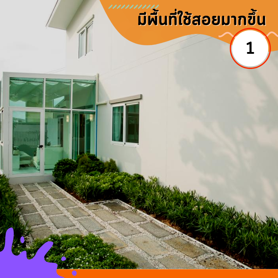 เพราะพื้นที่ใช้สอยที่มากขึ้น เราจึงสามารถปรับเปลี่ยนพื้นที่ให้ตรงกับไลฟ์สไตล์ที่เราชื่นชอบได้ อย่างเช่น จัดสวน เป็นมุมพักผ่อนในวันหยุดอยู่บ้าน หรือจะลองเปลี่ยนมุมหน้าบ้านเป็นพื้นที่ Work from Home เพิ่มไอเดียในการทำงานก็ถือว่าตอบโจทย์การใช้พื้นที่คุ้มค่าได้ดีทีเดียว