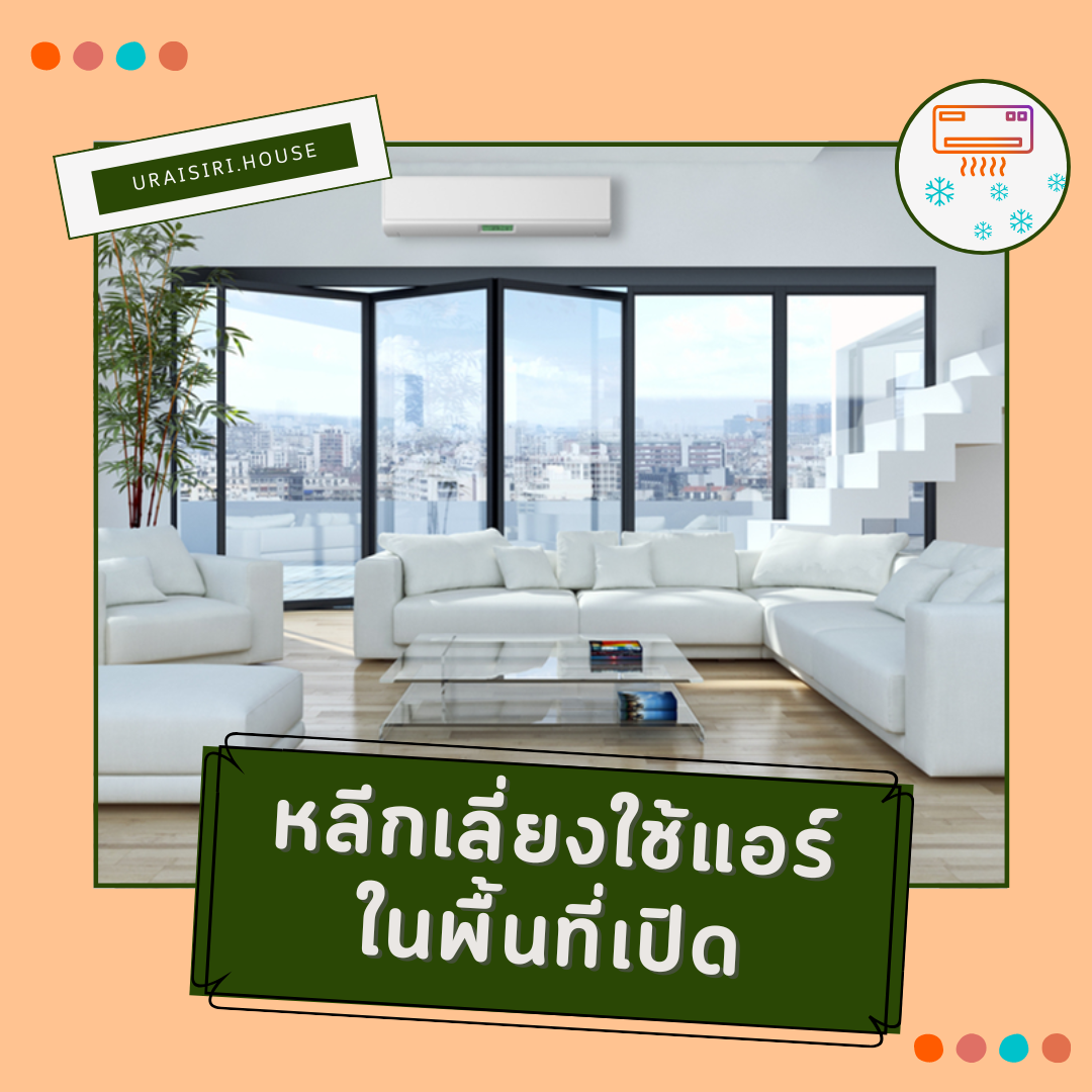 ควรเปิดแอร์ในห้องที่เป็นพื้นที่ปิด หรือถ้าจำเป็นต้องใช้แอร์ในห้องโถงจริงๆ ก็ควรติดตั้งฉากกั้นพื้นที่แบบเปิดปิด กั้นทางขึ้นบันได และทางเดินไปห้องอื่นๆ รวมถึงปิดหน้าต่าง ม่านให้เรียบร้อย ซึ่งม่านก็ช่วยลดอุณหภูมิจากแสงดอาทิตย์ภายนอก แอร์ทำงานน้อยลง ประหยัดพลังงานและค่าไฟแล้ว